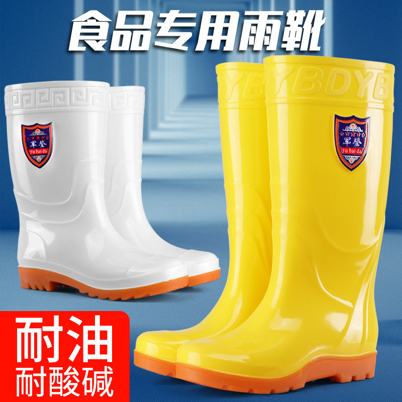 Food hygiene boots rain boots men's and women's medium and high tube white non-slip waterproof acid-base oil-resistant chef shoes rubber shoes aquatic shoes