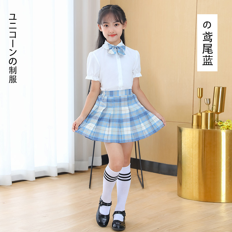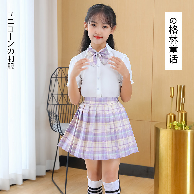 jk children's genuine uniform Girls skirt Summer foreign style sailor suit grid skirt Japanese primary school school uniform pleated skirt