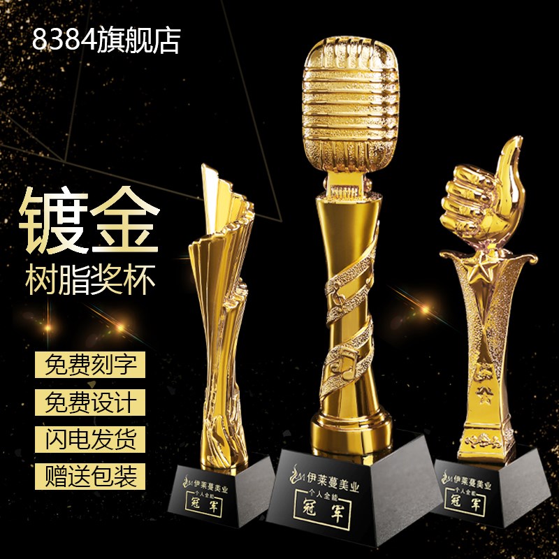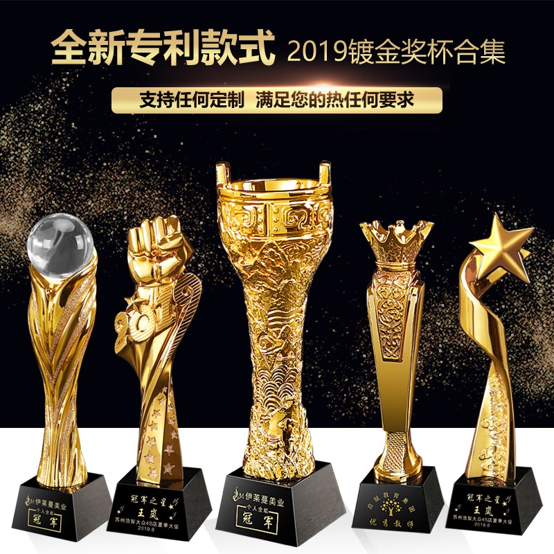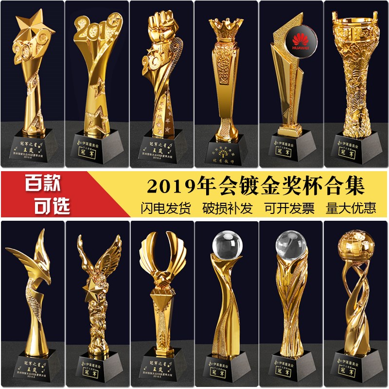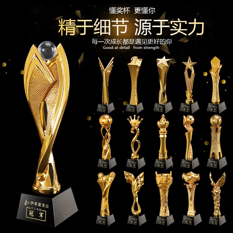 Golden trophy Crystal trophy Custom resin Company staff honor souvenir medal Authorization plate