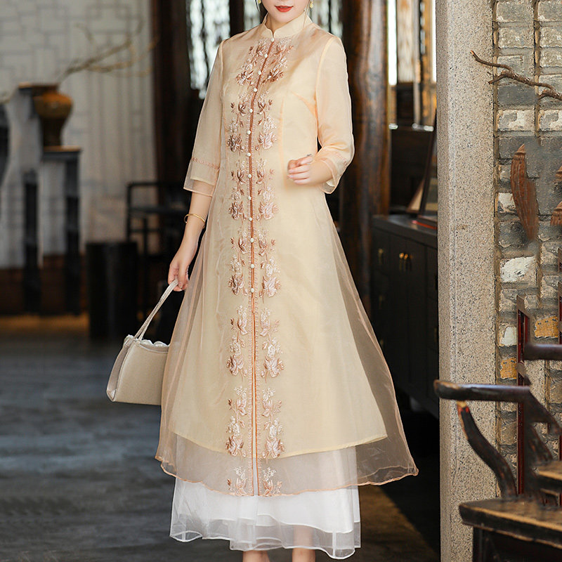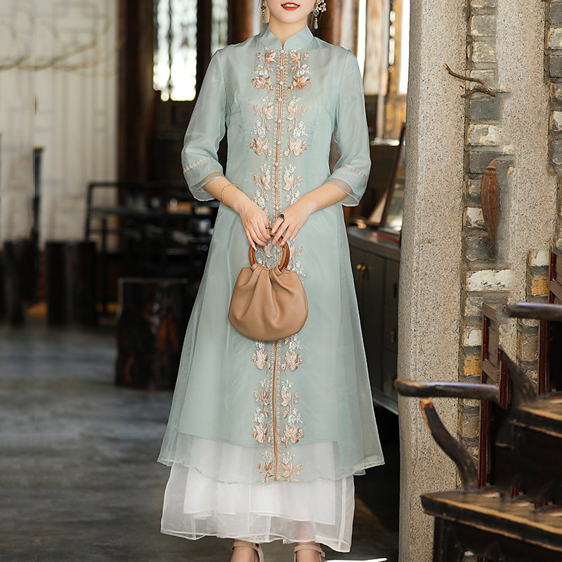 Improved qipao Summer 2021 The new Chinese Wind Long version of the Lean Temperament Young PALACE RETRO FOREIGN DRESS