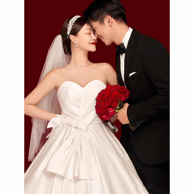Pregnant woman covered wedding bride marriage ceremony gauze simple film building clothing appearance photo to wipe out the door yarn