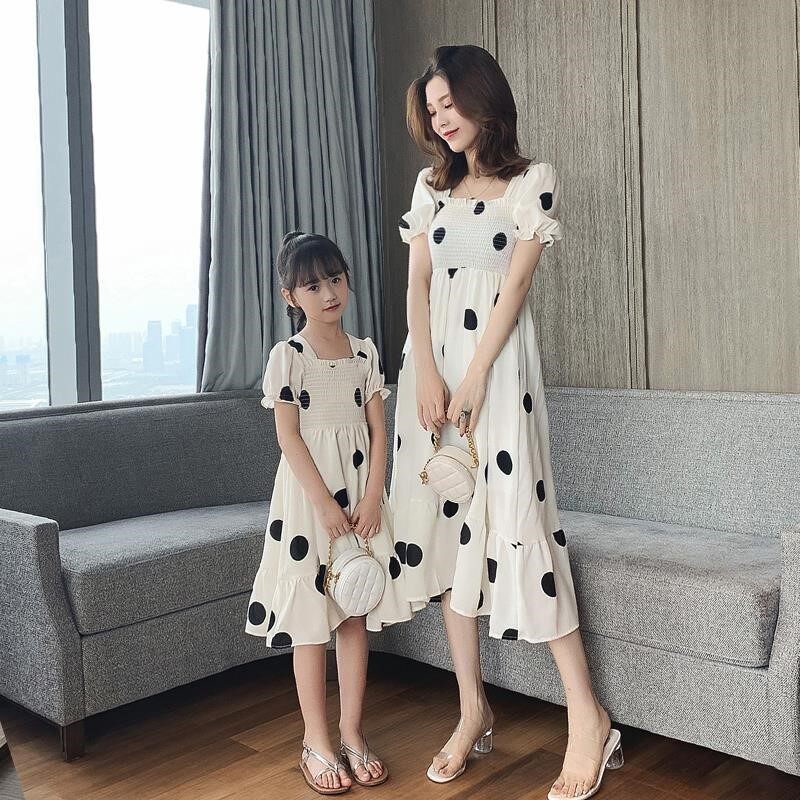 Mother and daughter in a dress.