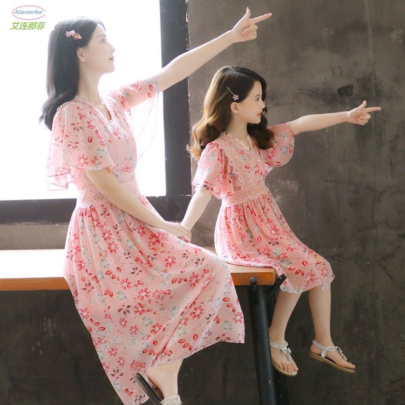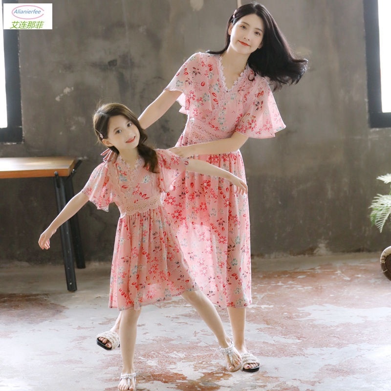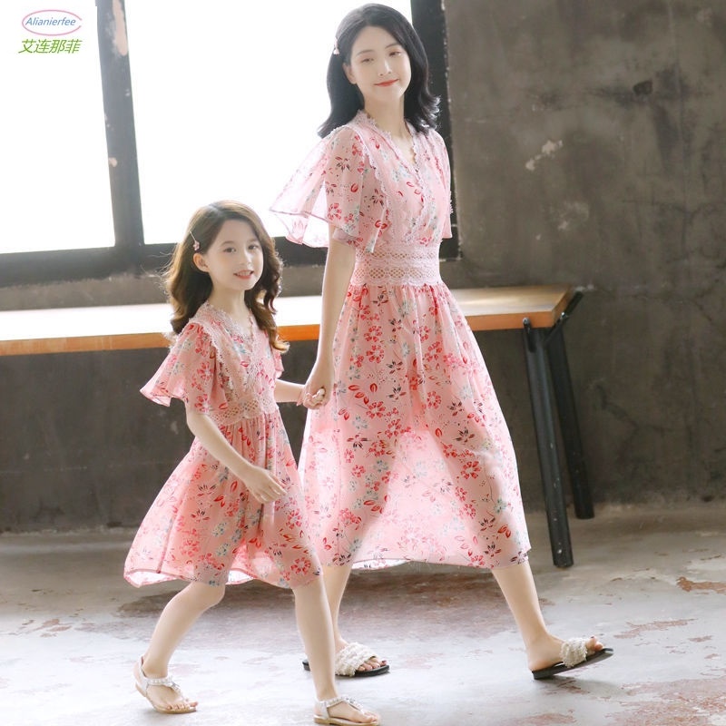 Pro-son fit a family of three foreign fashions fashion summer suit Chardress foreign dress 2022 Mother woman dress Korean version princess dress