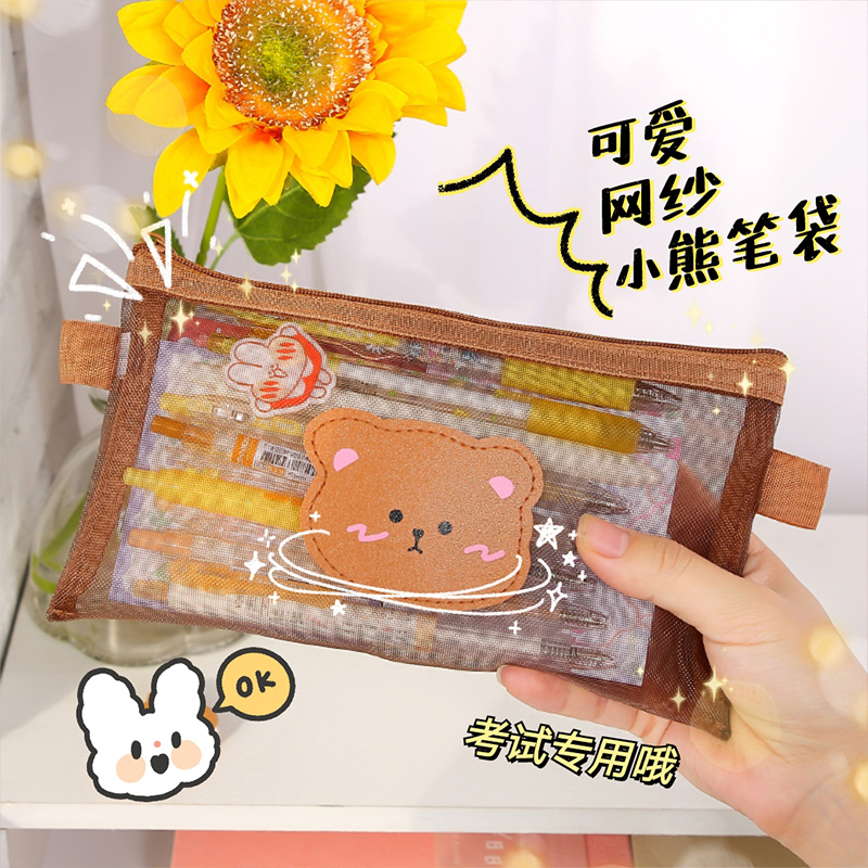 Transparent mesh pencil case ins Japanese girl small stationery box children boy small capacity primary school kindergarten pencil case 2022 new popular first grade simple stationery bag