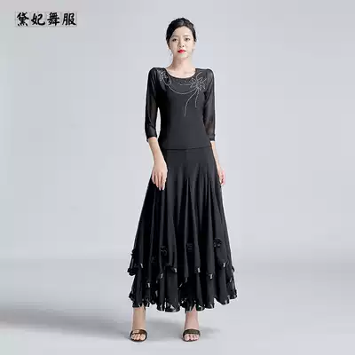 Modern dance Latin dance Autumn national standard dance Waltz dance dance dress round neck top dress women