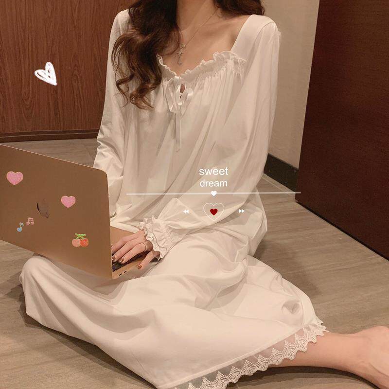Very Fairy long sleeve sleeping dress Women's fall 2020 new Korean version Pharostyle retro princess wind loose and thin ocean dress