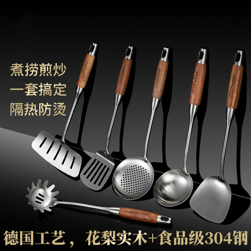 German CUGF thickened 304 stainless steel pot shovel soup spoon cooking spoon iron shovel household frying spoon kitchen set