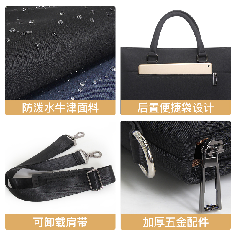 Business men's briefcase canvas laptop bag 14-inch large-capacity waterproof Oxford a4 file office work bag