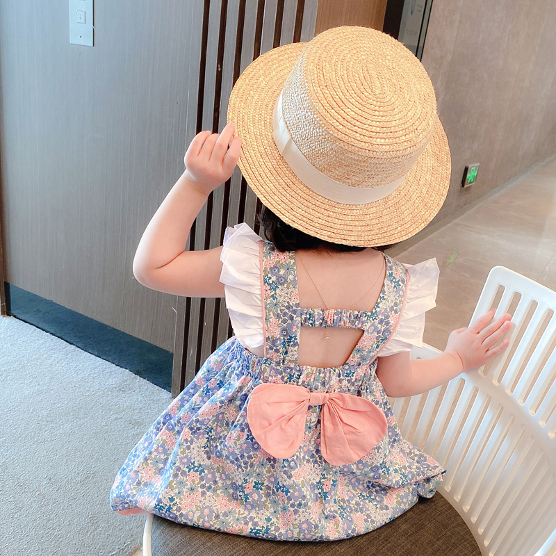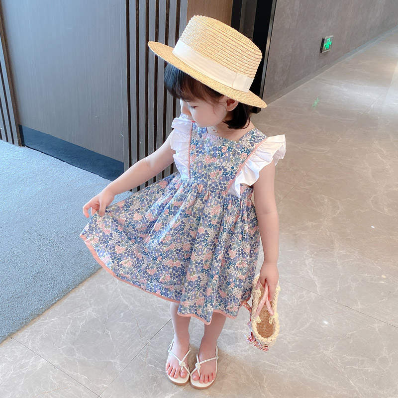 Girls dress summer pure cotton floral 1 4 inch socket wrench sleeve children's princess skirt summer baby girl summer dress net red skirt