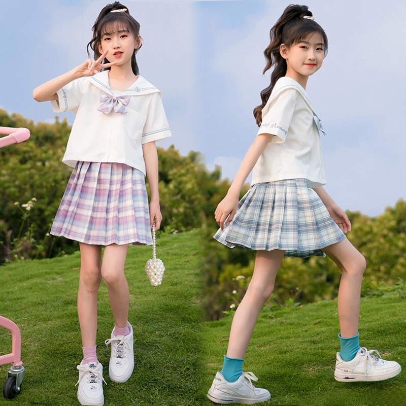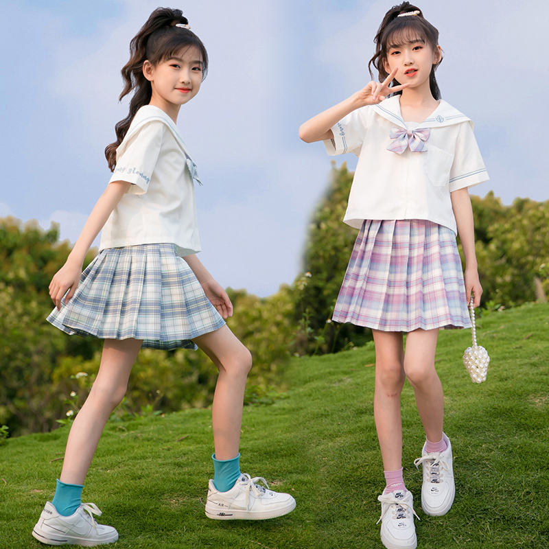 Girls jk uniform skirt summer dress girls college style suit skirt big boy summer thin section children's Western style dress