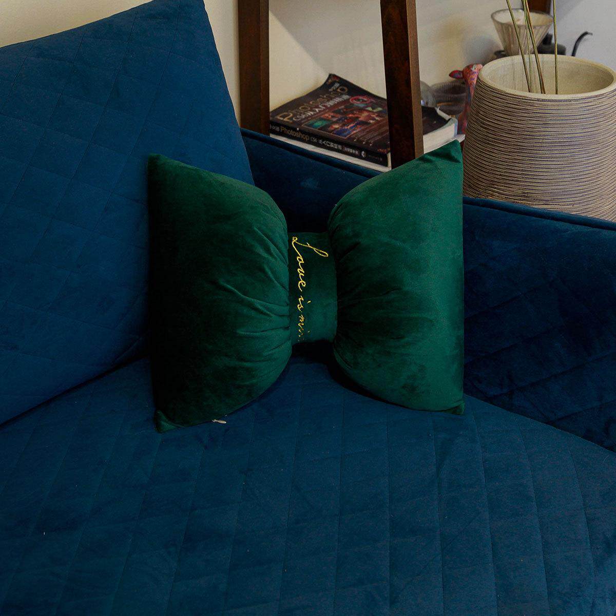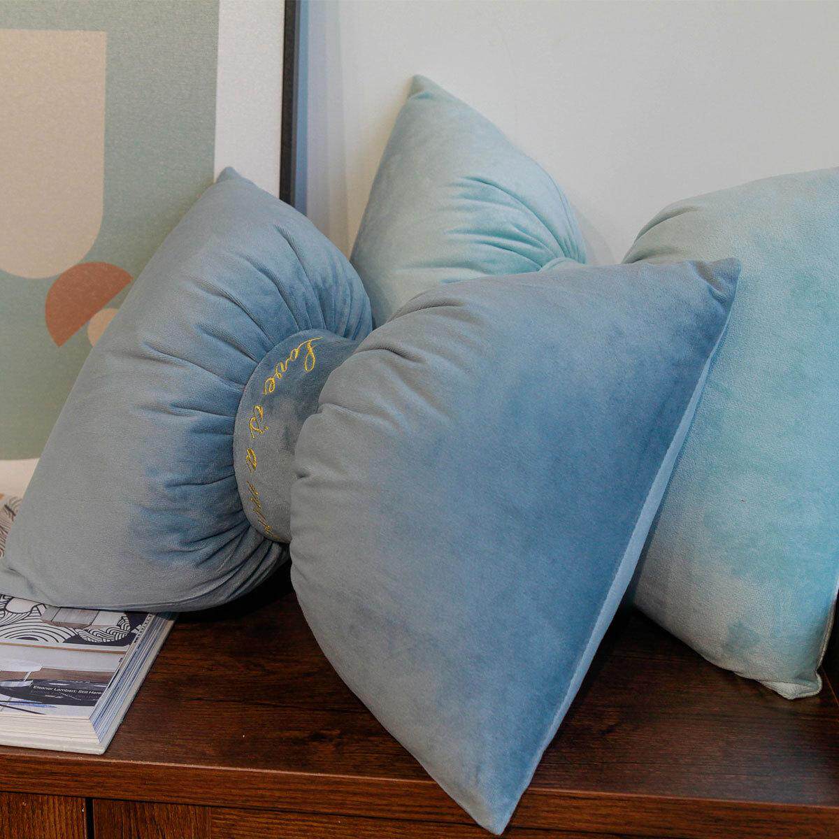 Pillow sofa large cloth Holland velvet embroidered bow buckle waist pillow car decoration cushion containing core