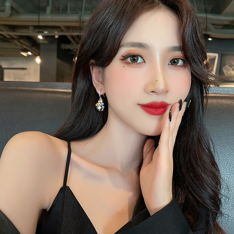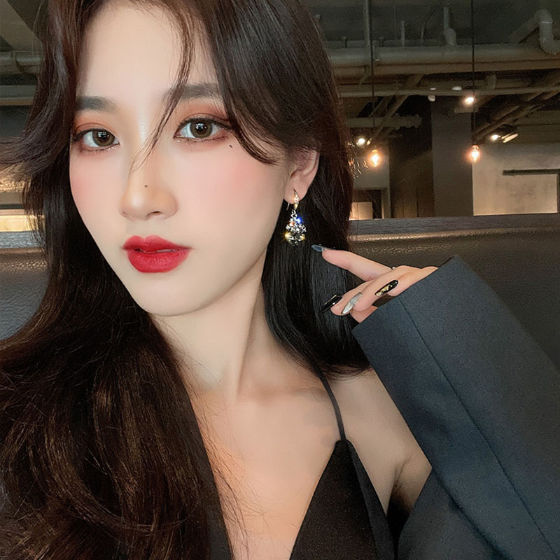 Retro light and luxurious ~ beautiful treasure grey ~ crystal earring earrings earrings earrings female new wave fashion ear ornaments Temperament Tide