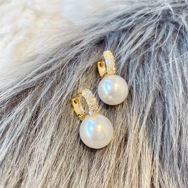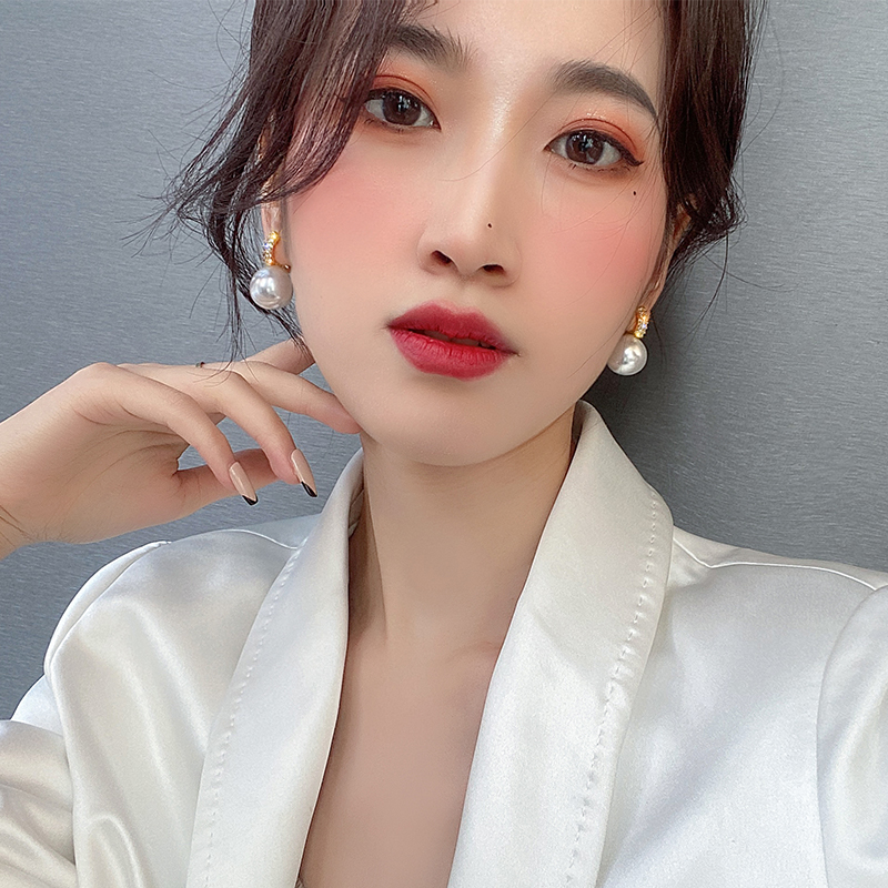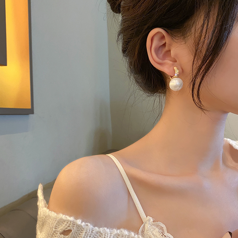 Fashion Pearl Ear Clasp ~ Qi light extravagant ~ inlaid drill Advanced sensation Women net red with 925 ear earrings Temperament Tide