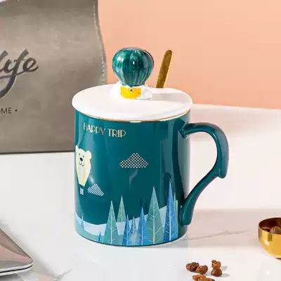 Cute ceramic cup Female with lid Spoon mug Office water cup Household milk breakfast coffee cup High face value