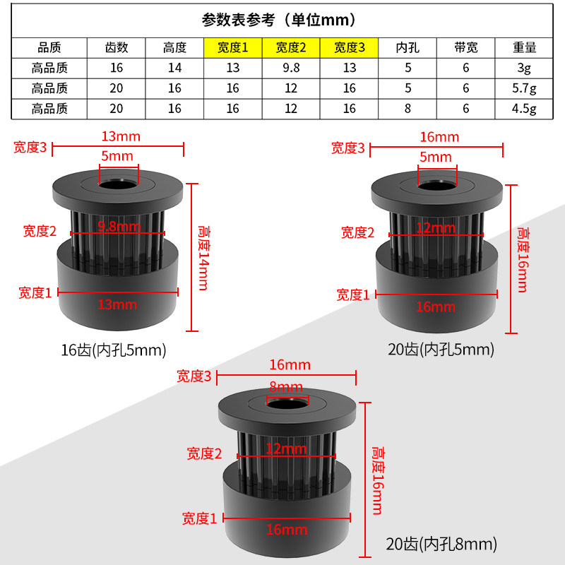 20 teeth inner hole 5 height 16 (high quality) 20 teeth inner hole 8 high 16 (high quality) 16 teeth inner hole 5 height 14 (high quality)