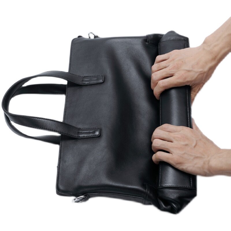 Men's handbag large capacity leather business briefcase casual shoulder messenger bag light luxury first layer sheepskin solid color