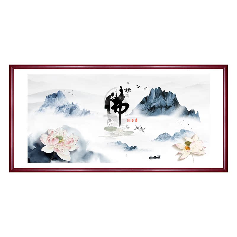Lotus Buddhist word Buddhist word picture book house office solid wood with frame living room decoration painting Merchants Town Residence mural hanging painting