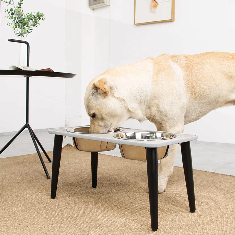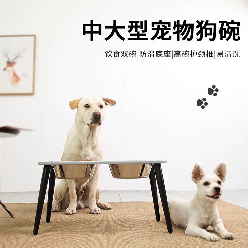 Medium large dog dog bowls dog basin large number double bowl protection cervical spine pet bowl rack anti-overturning dog dog food basin stainless steel