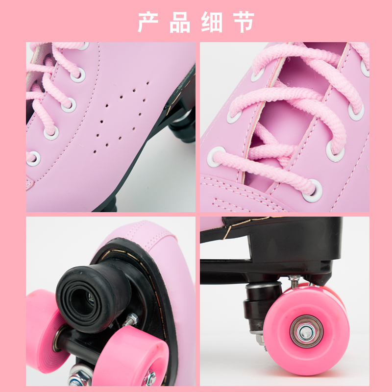 New pink cowhide adult double row roller skates adult men's and women's roller skates beginners four-wheeled luminous skates