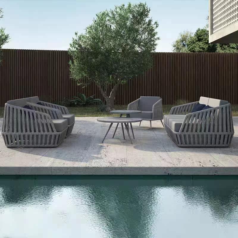 Outdoor Sofa Balcony Rattan Chair Coffee Table Rattan Simple Courtyard Villa Outdoor Hotel Garden Furniture Combination Leisure