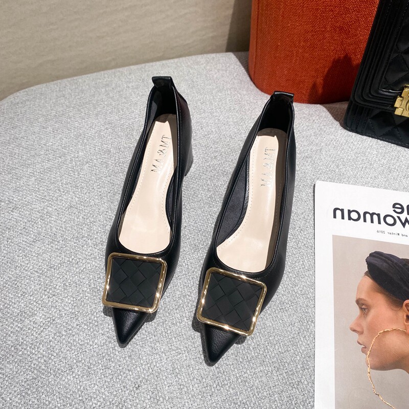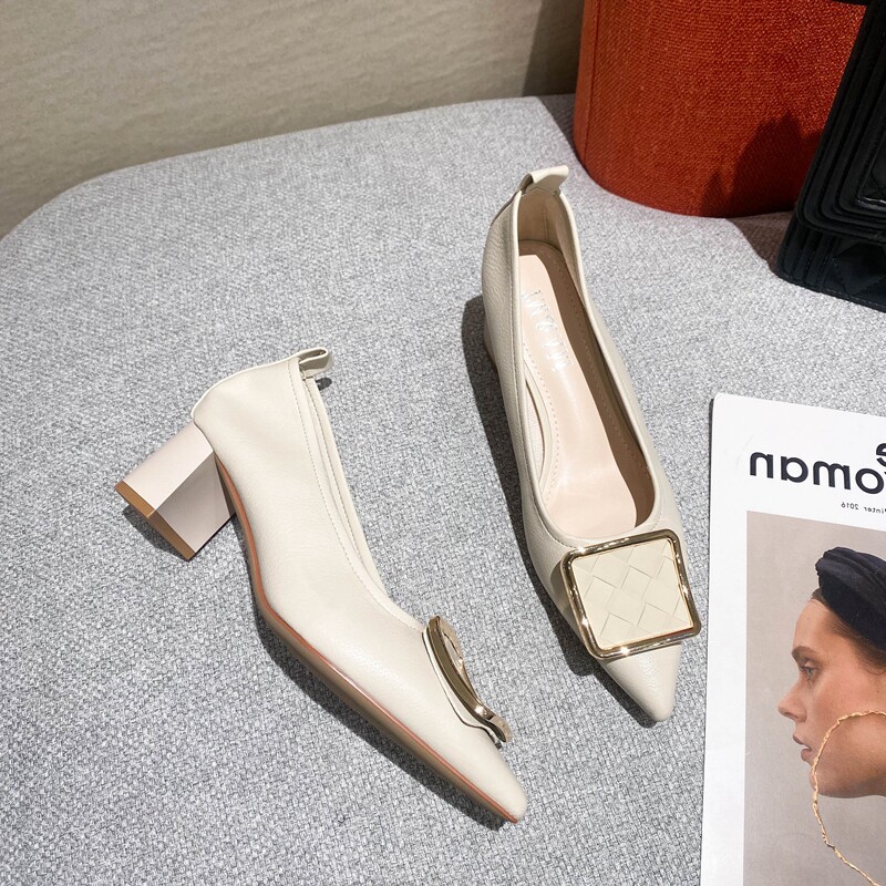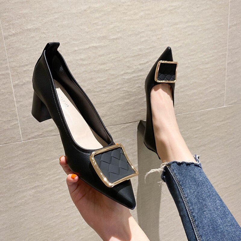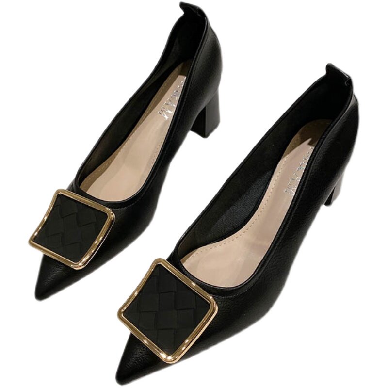 ck erwin French Paris temperament pointed toe shallow mouth single shoes thick heel high heels square buckle professional work shoes