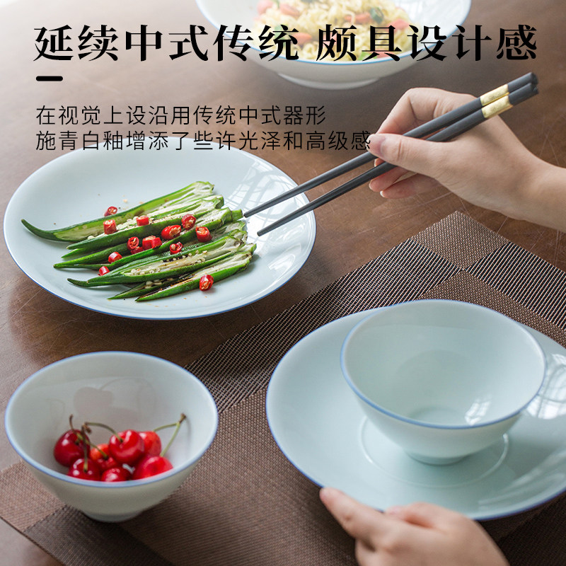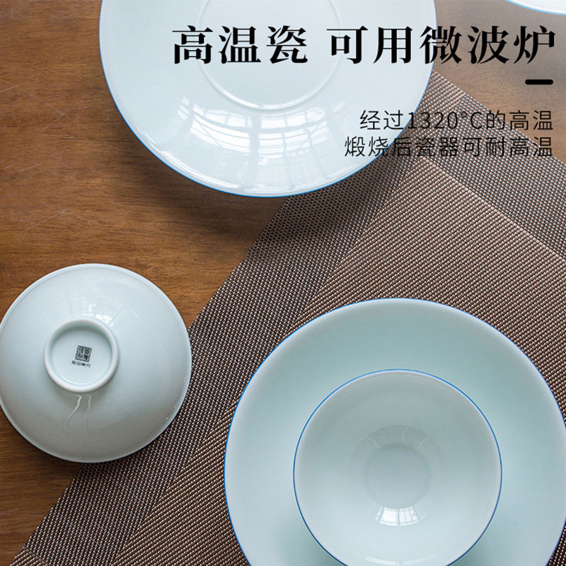 Jingdezhen Official Ceramic Simple Blue Side Blue Shadow Tableware Set HouseCommercial Dish Dish Dish Combination Joe Moving Gift