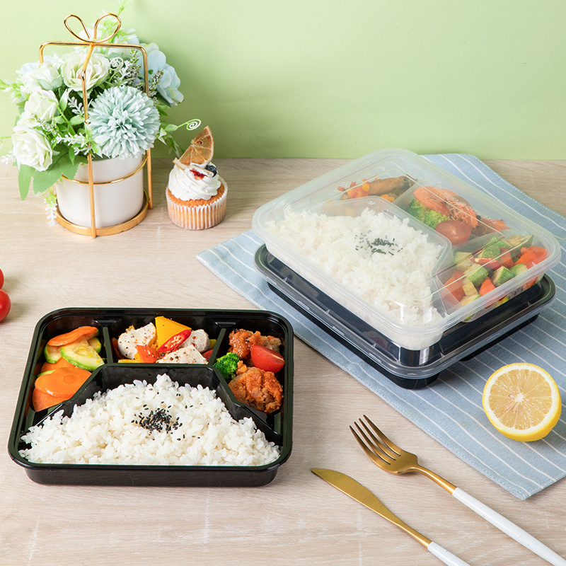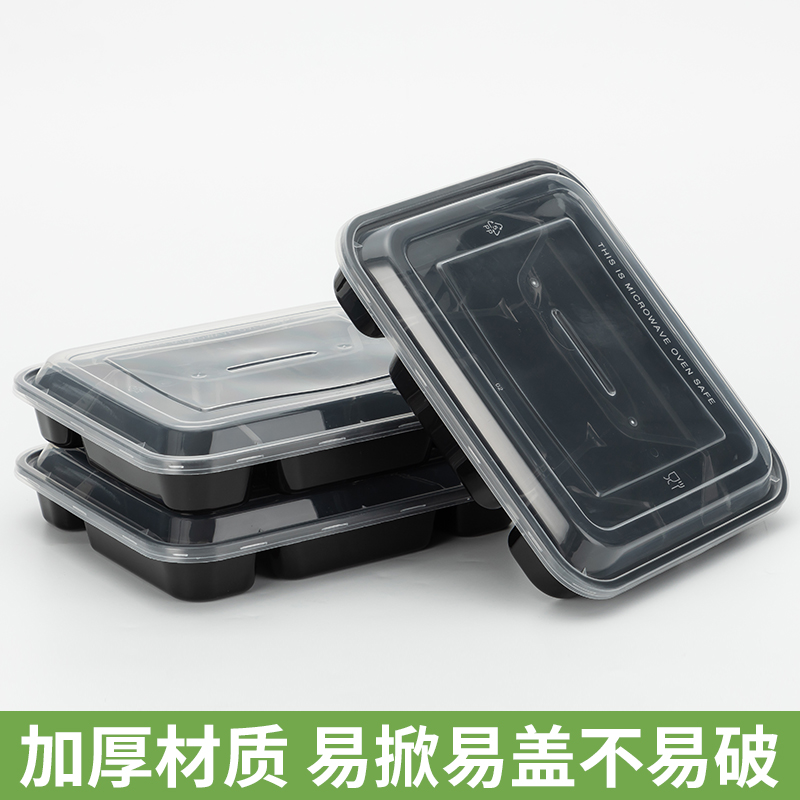 Fast winning disposable dining box square Four-grid takeaway packaging box black commercial sub-grid snack box lunchbox lunch emergency lunch box