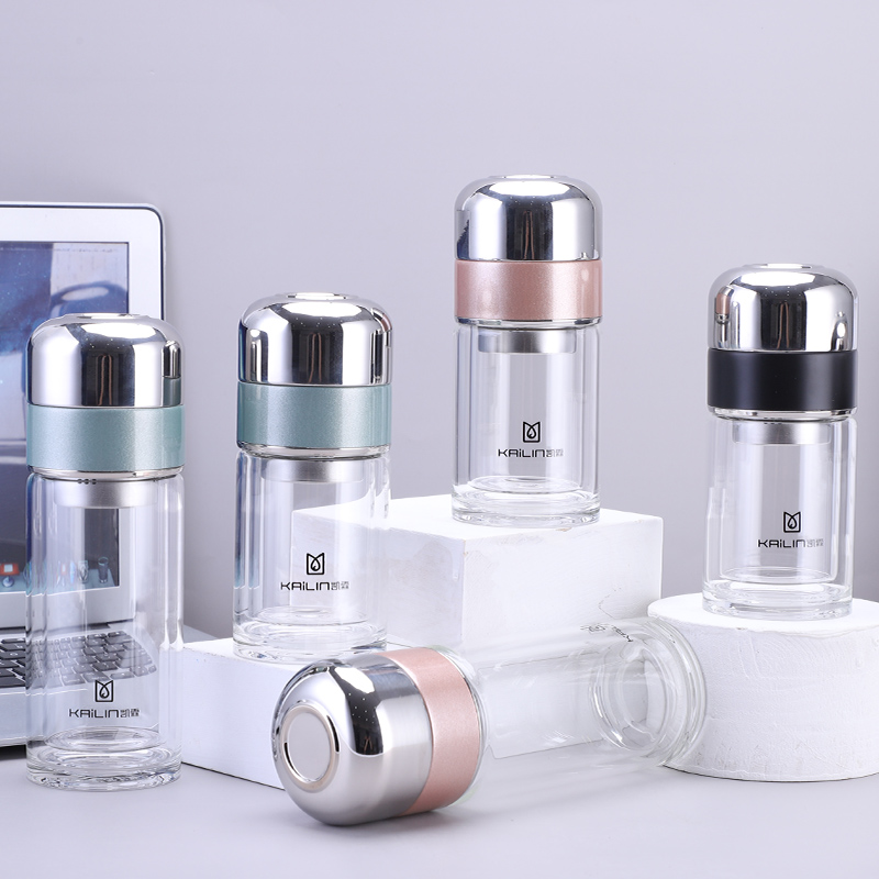 Kelin double glazed glass cup portable female student drink water cup home male tea water separation tea cup group purchase customized
