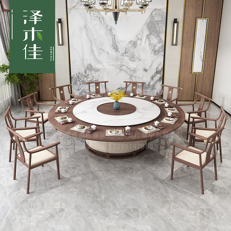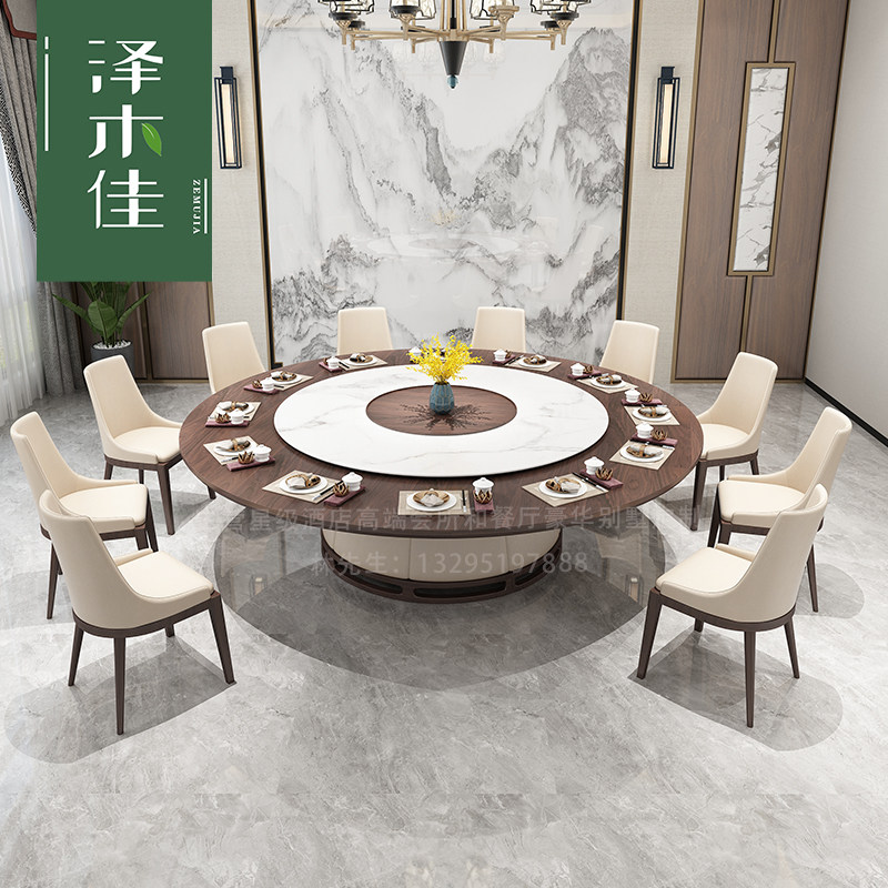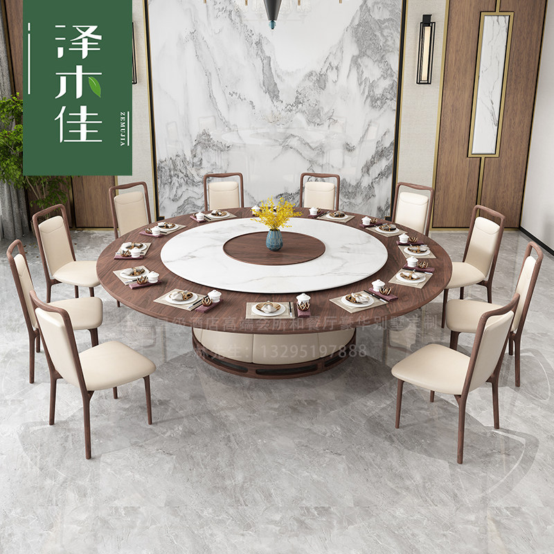 Hotel Electric Table Roundtable Roundtable Roundtable New Chinese Solid Wood Automatic Round Round Table