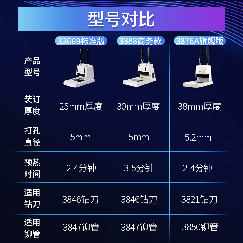 33669(BINDING THICKNESS 25MM) 3888N(BINDING THICKNESS 30MM) 3876A(BINDING THICKNESS 38MM) 33669 RIVETING TUBE 100