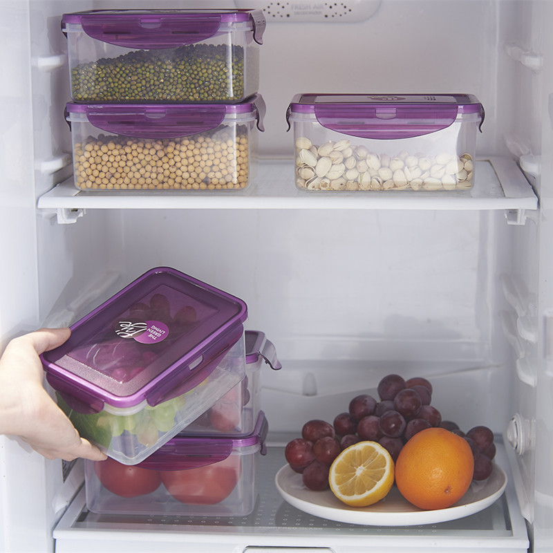 1000 ml transparent crisper with six pieces of 1000 ml Pink Preservation Case 6 pieces 1000 ml Purple Preservation Case 6 pieces