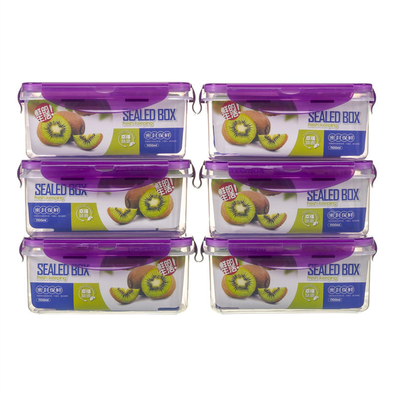 1000 ml rectangular fridge refreshing box 6 pieces of food containing box microwave oven lunch box adult lunch box