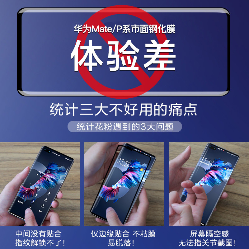 Beth Huawei p50pro mobile phone protective film p40pro full screen mate40 water condensation m40 full coverage mate30 full edge tempered glass mt40e film suitable for China m