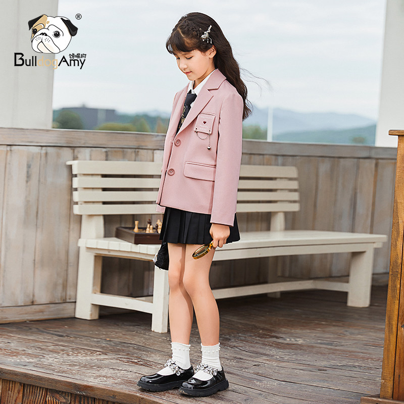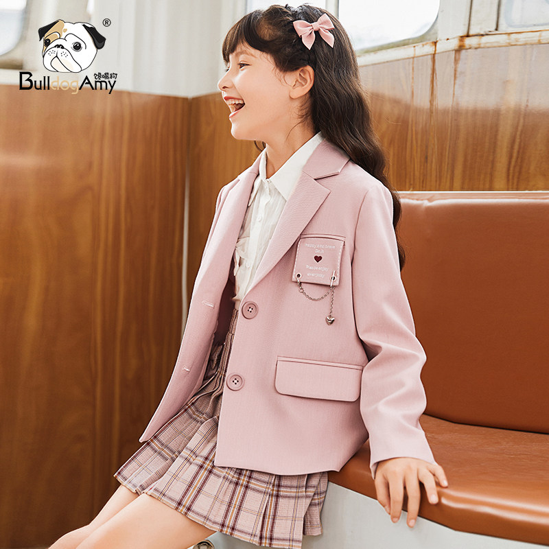Girl's small suit 2022 Spring and autumn new foreign pie Grand-turned child Western suit CUHK Tong Tong Beauty Trendy Small Jacket