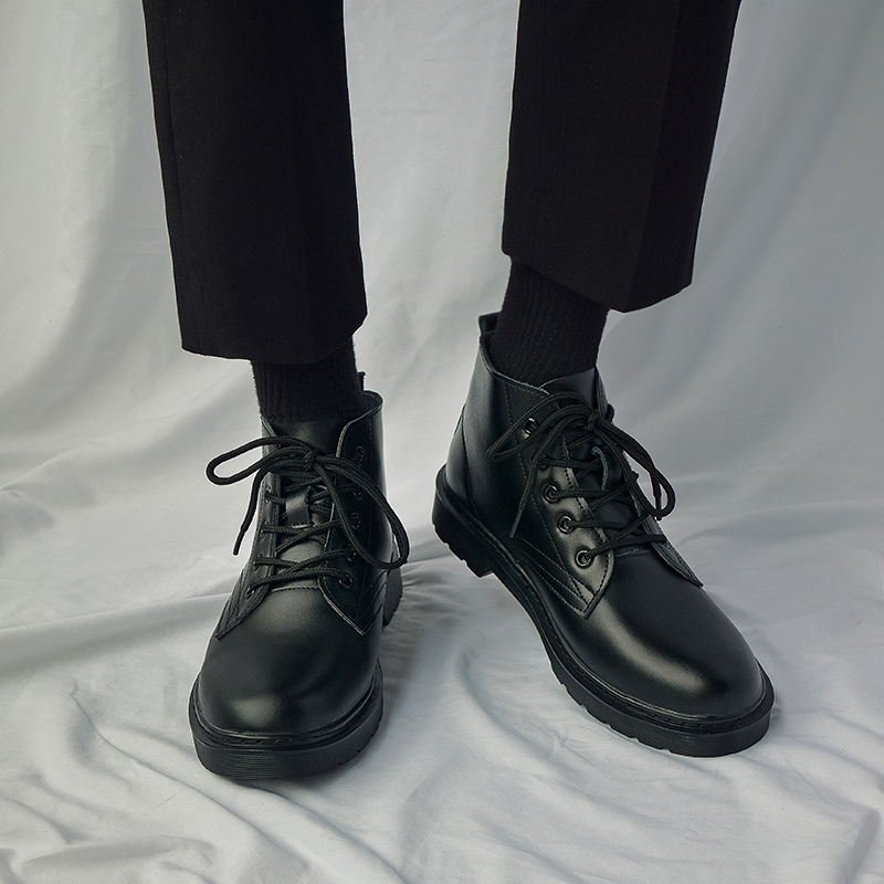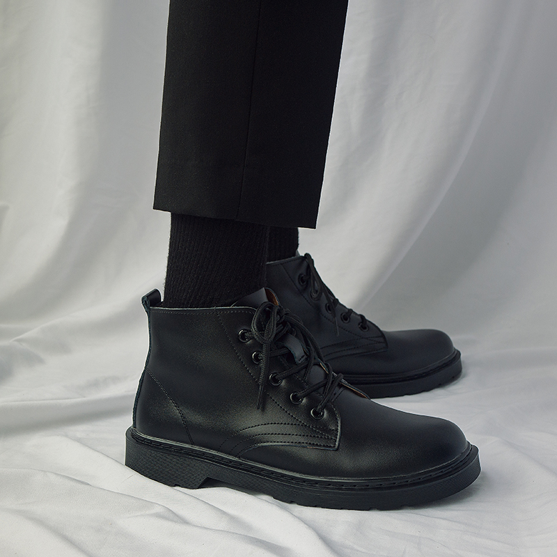 Genuine leather Martin boots male high cylinder ins Inron locomotive handsome gas trend 100 lap port wind tooling summer black leather shoes
