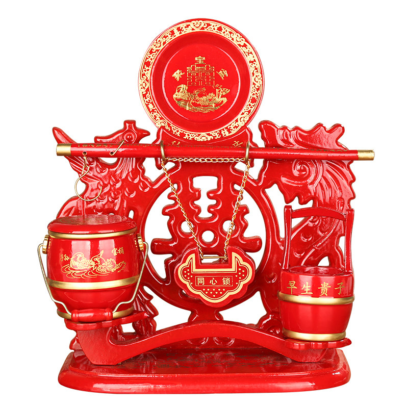 Wedding Supplies large All children and grandchildren Barrels Children And Grandchildren Treasure Barrels of Festive Wedding with Imitation Red Wood Wedding Toilet Large Spittoon-Taobao