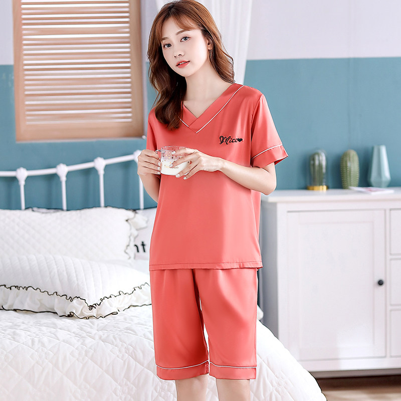 2021 New Ice Silk Sleepwear Women's Summer Slim Short Sleeve Superior Sensational Lady Casual Home Clothing Two Style Suits