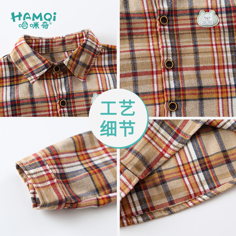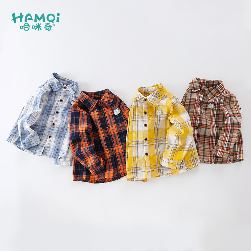 Children's clothing boys' plaid shirts spring and autumn baby long-sleeved shirts children's brushed tops bottoming shirts coats winter