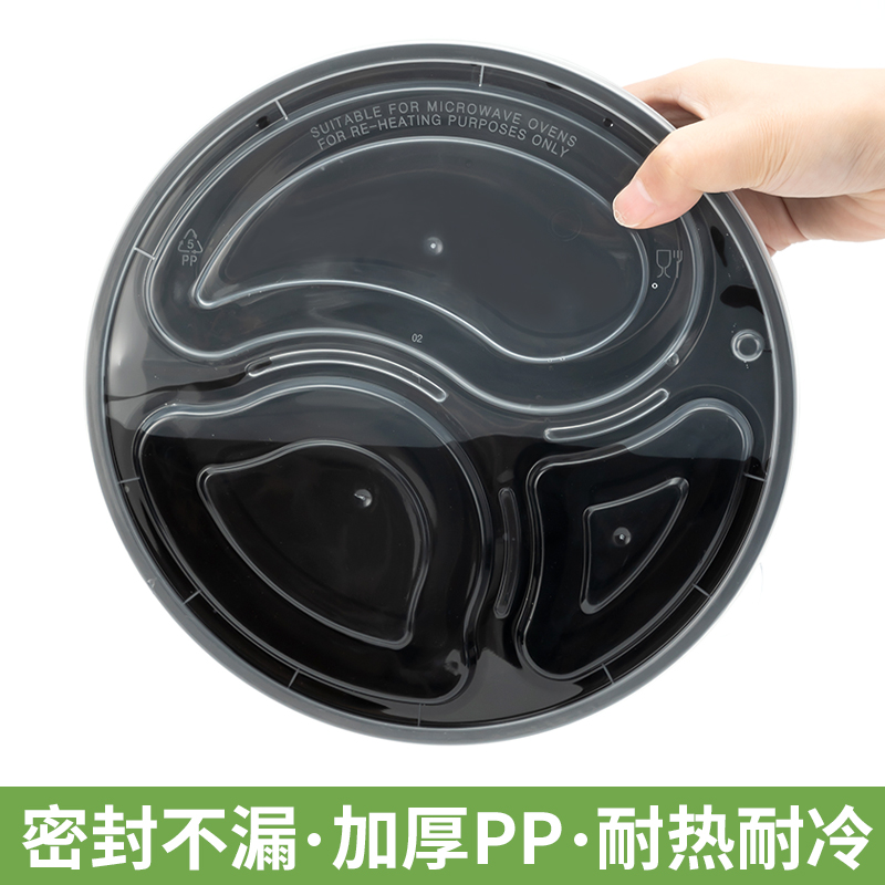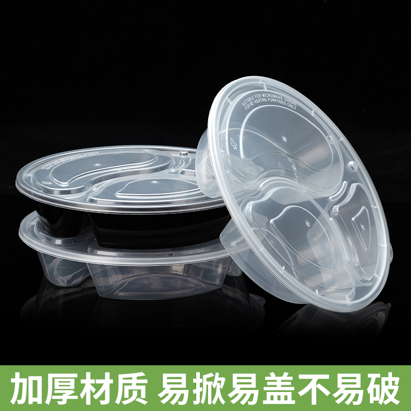Xunsheng Disposable Lunch Box Round Three Extra Delivery Packing Box Split Fast Food Box Plastic Transparent Thickened Bento Lunch Box