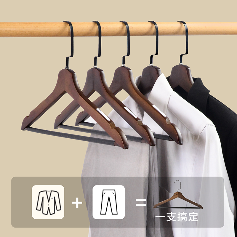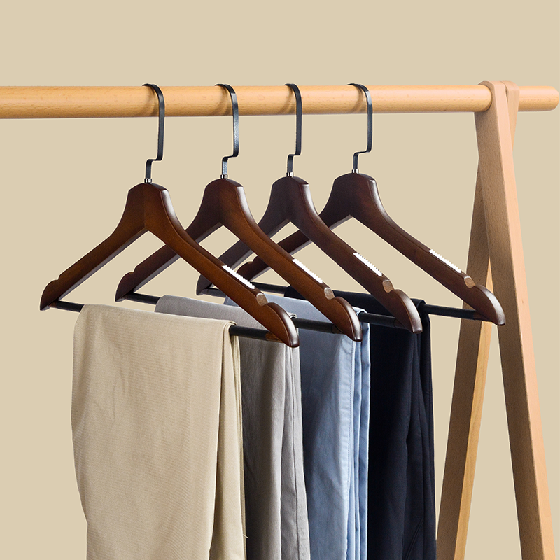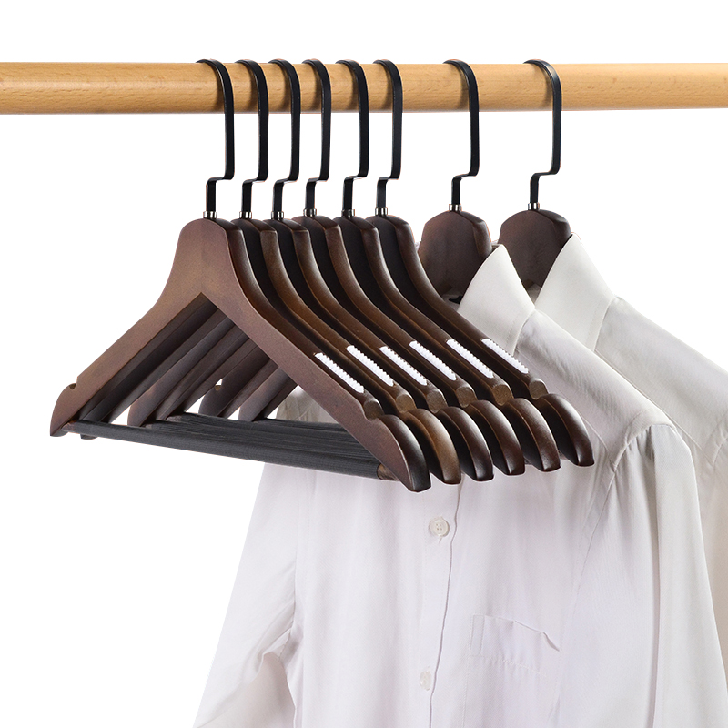 Wooden hangers household solid wood adult hangers hotel clothing store clothing rack seamless anti-skid custom Logo hangers