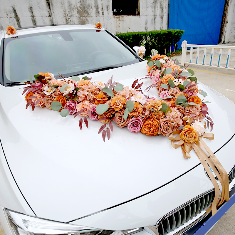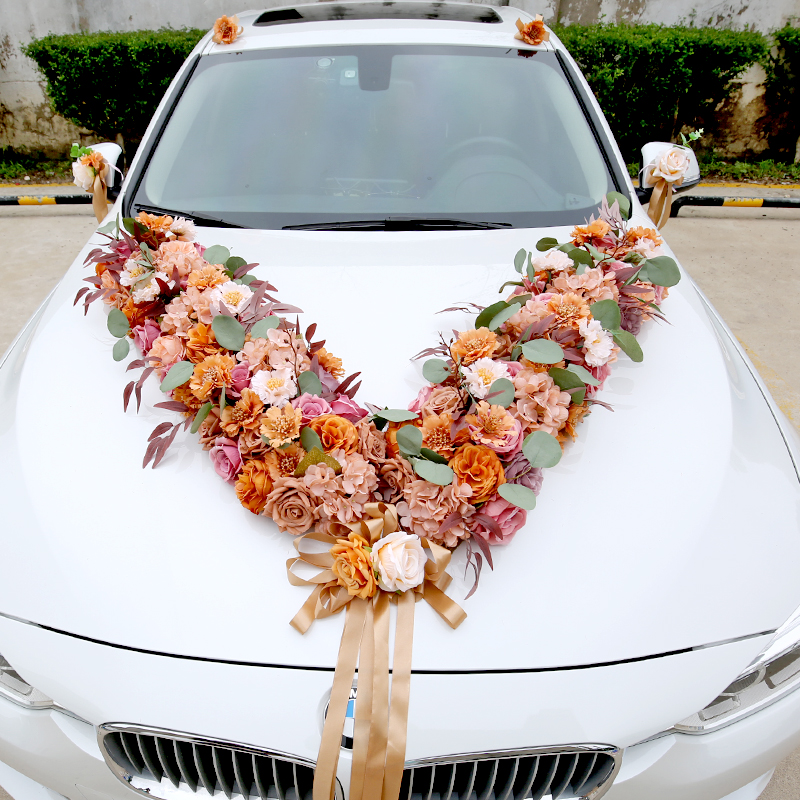 Vintage autumn forest department big V-shaped Allah car front Wedding car decoration Floral supplies Wedding decoration pull flower suction cup