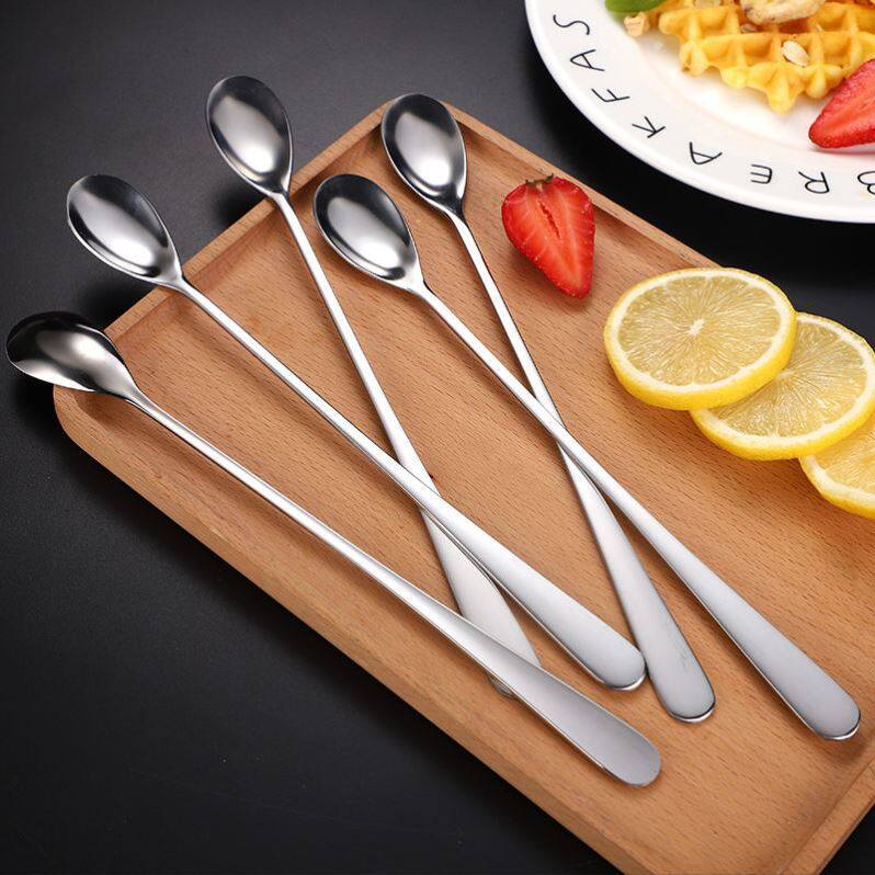 Long handle spoon thickened stainless steel seasoning spoon stirring spoon ice spoon milk tea round spoon coffee spoon kitchen seasoning spoon