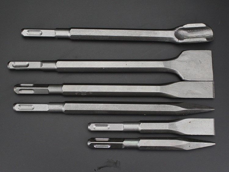 Electric hammer drill suit with chisel square handle 4 pit impact drill bit mixed earth electric pick tip flat chisel hexagonal round handle pick fiber