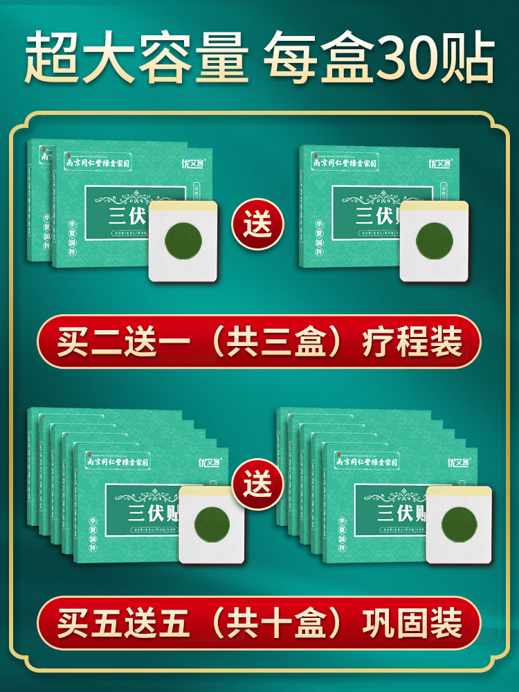 Tongrentang Sanfu stickers plus amount 1 box (30 stickers in total) free acupoint map Tongrentang Sanfu stickers buy 2 get 1 free (90 stickers in total) free acupoint map Tongrentang Sanfu stickers buy 5 get 5 free (300 stickers in total)