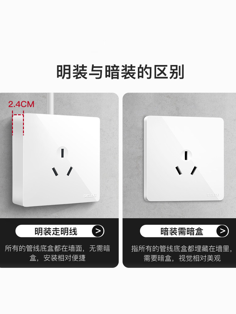 Delixi Ming installed switch socket household one open double cut 5 five holes open line power socket panel porous switch