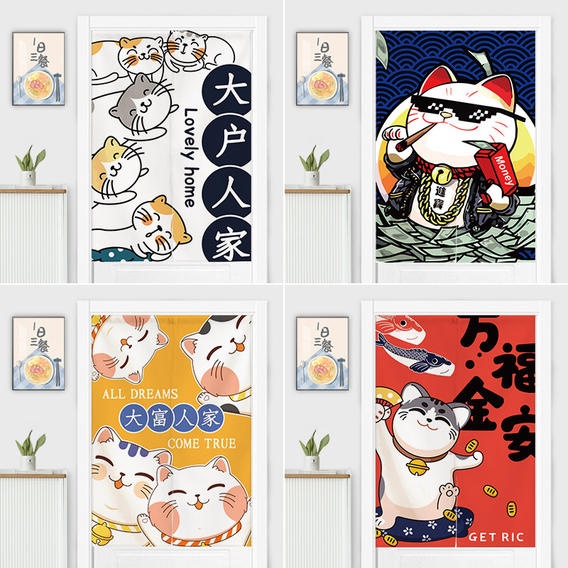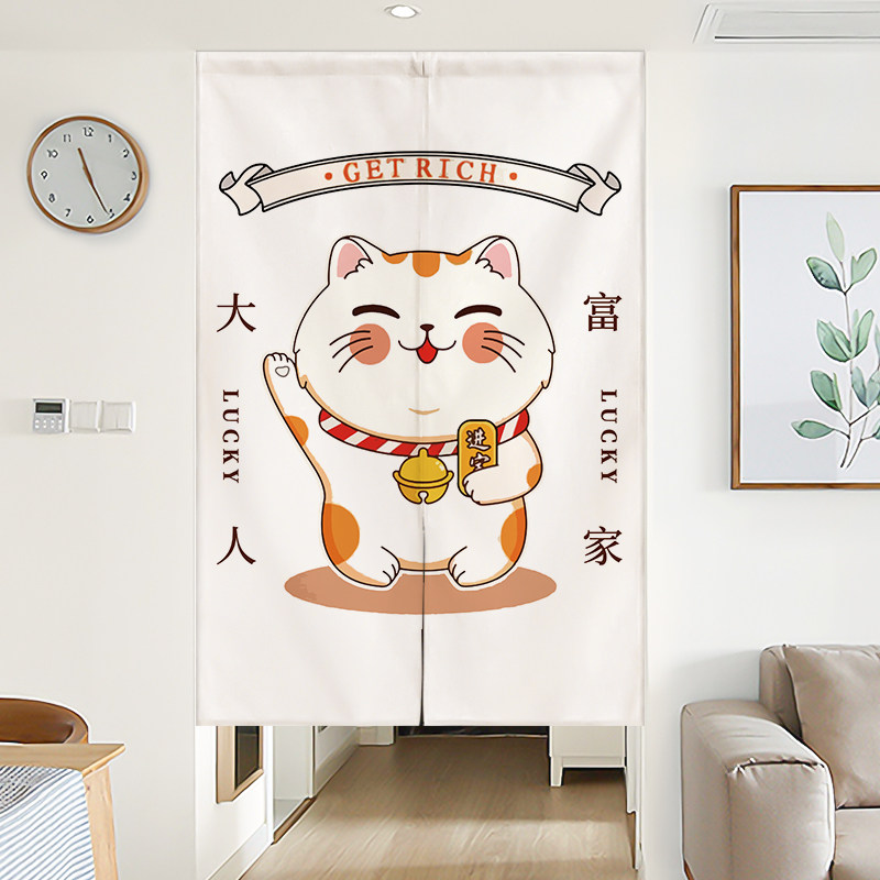 Japanese Lucky Cat Door Curtain Home Bedroom Partition Curtain Free Punch Kitchen Fabric Half Curtain Short Curtain Toilet Hanging Curtain