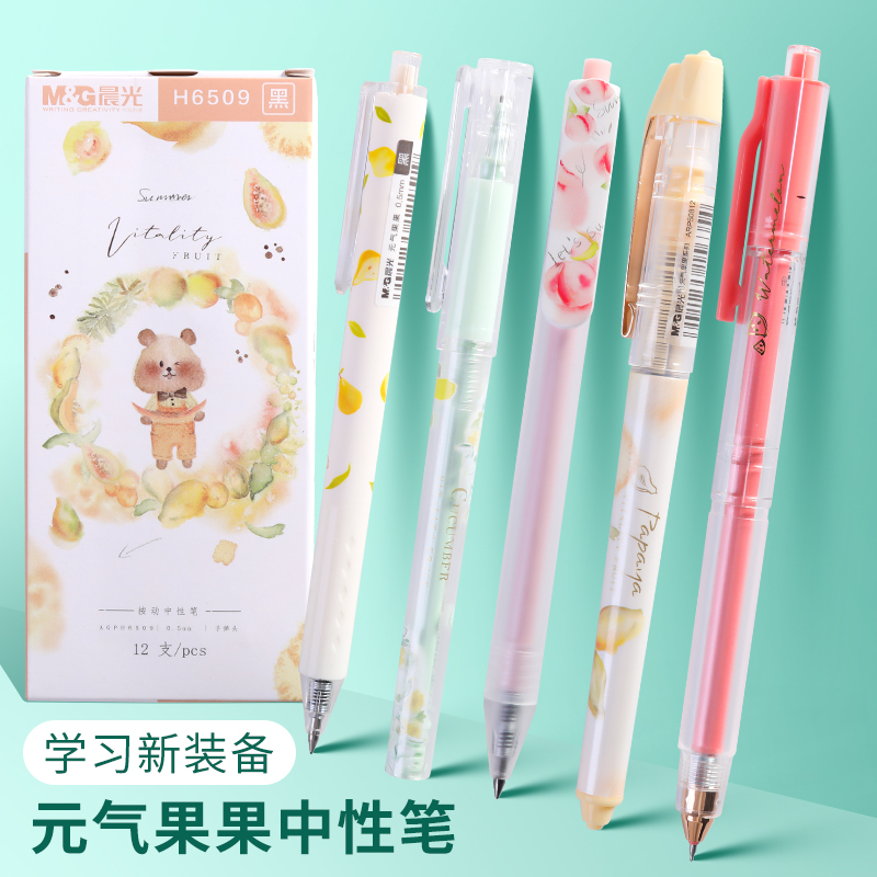 Chenguang Yuanqi Guoguo limited gel pen press black 0 5 bullet head capped girl heart student with full needle tube gel pen signature pen cute straight liquid large-capacity quick-drying water-based ballpoint pen