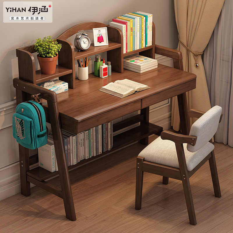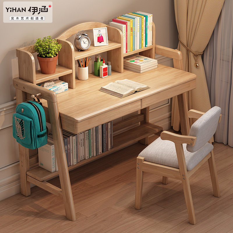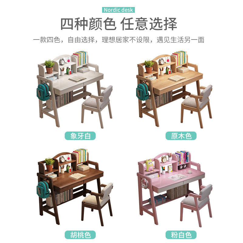 Solid wood desk bookshelf integrated table minimalist home student desk with adjustable high and low lifting children study table