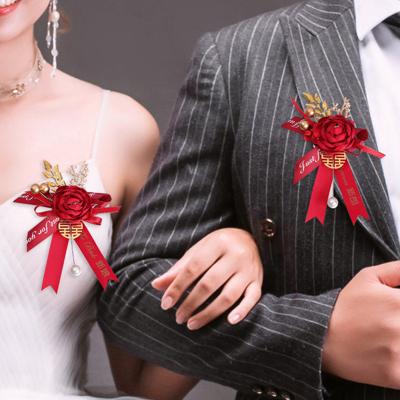 Lemon yellow, light gray, beige, milky white, rose red, white flowers (bride and bride), flowers (father and mother), flowers (father-in-law), flowers (best man and bridesmaids)