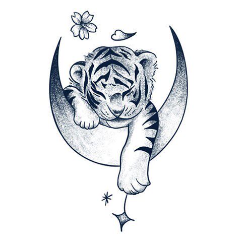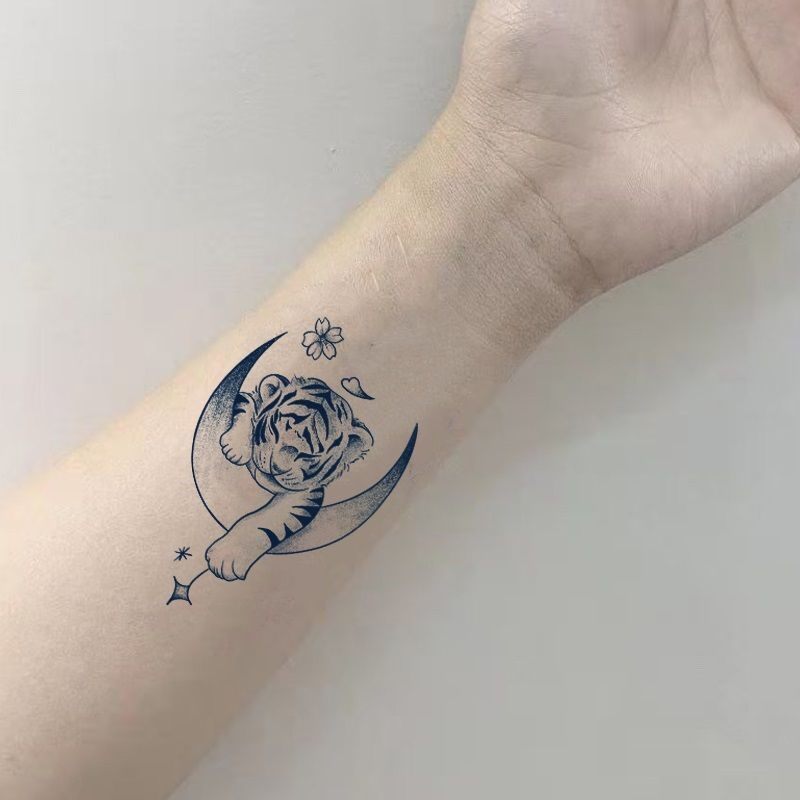 Juice Small Tiger Grass Ben Tattoo Stick Waterproof Persistent Female Realistic ins Wind Wrist Cute animal picture not reflective